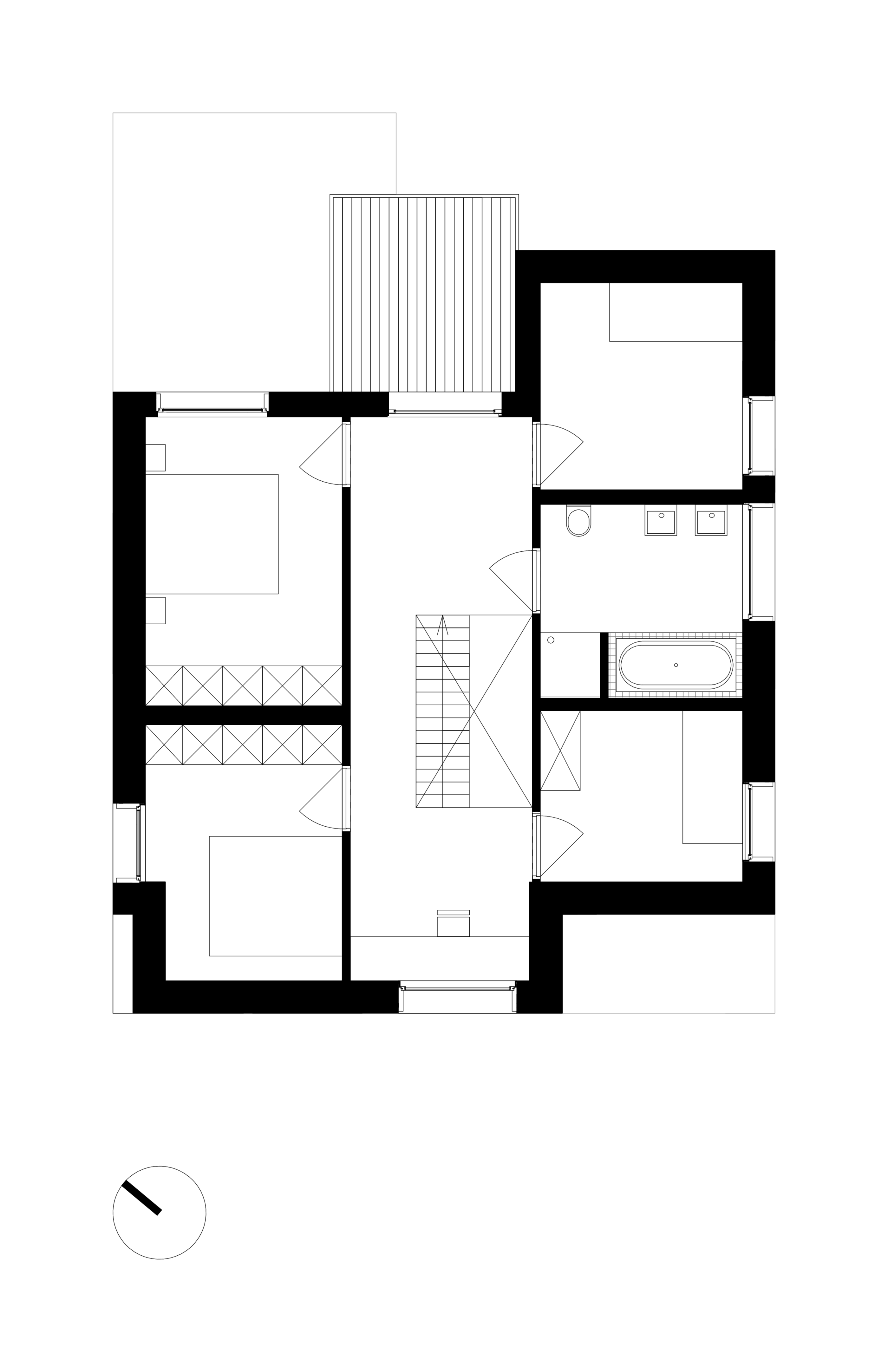 De jaren ’70 bungalow bevindt zich in een typisch vlaamse verkaveling, omgeven door het groen. De vraag van de opdrachtgever was vrij eenvoudig, namelijk een uitbreiding van de dakverdieping met twee extra kinderslaapkamers. Vrij snel in het ontwerpproces werd beslist om de dakverdieping te beschouwen als een volledig nieuwe verdieping met een nieuwe structuur en een nieuw plan. Enkel de positie van de trap bleef behouden. Door het dak op te klappen is net voldoende ruimte gemaakt voor de uitbreiding. Die werd opgetrokken in een lichte houtconstructie, aan de buitenzijde afgewerkt met metselwerk en pannendak met scherpe afgelijnde dakranden.